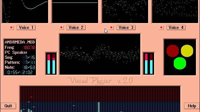 Visual player 2 fue un famoso programa reproductor de ficheros de trackers musicales tipo .MOD que se distribuyó como Shareware.